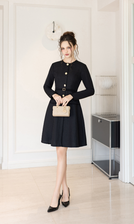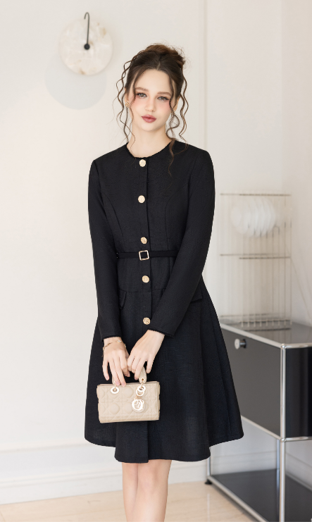 Original price was: 1.050.000 VND.710.000 VNDCurrent price is: 710.000 VND.Váy Kinari thiết kế tay dài phối cúc kèm đai dáng xòe nhẹVáy Ronica