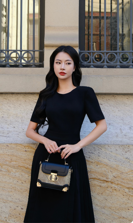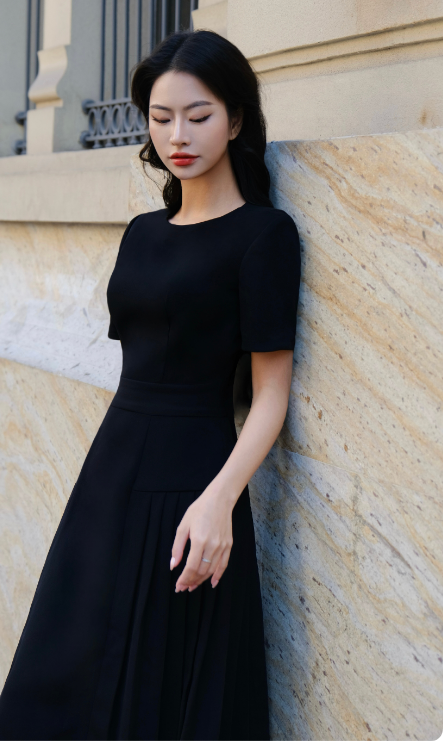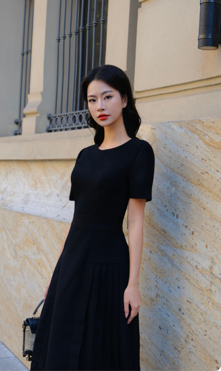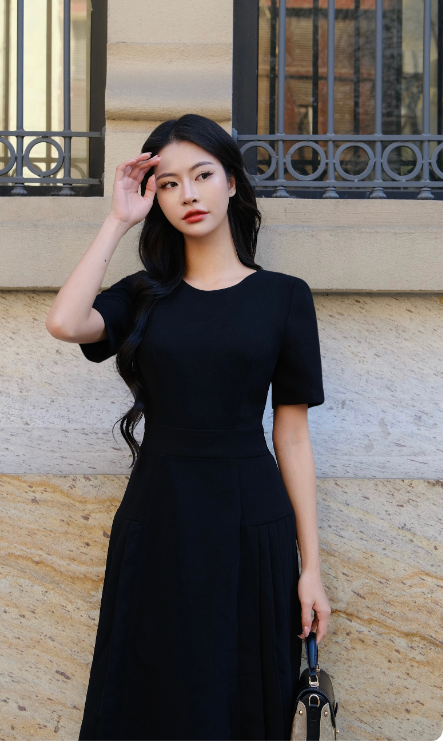 Váy Arlis đen thiết kế dáng ôm xếp ly can eo thanh lịch