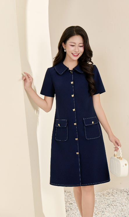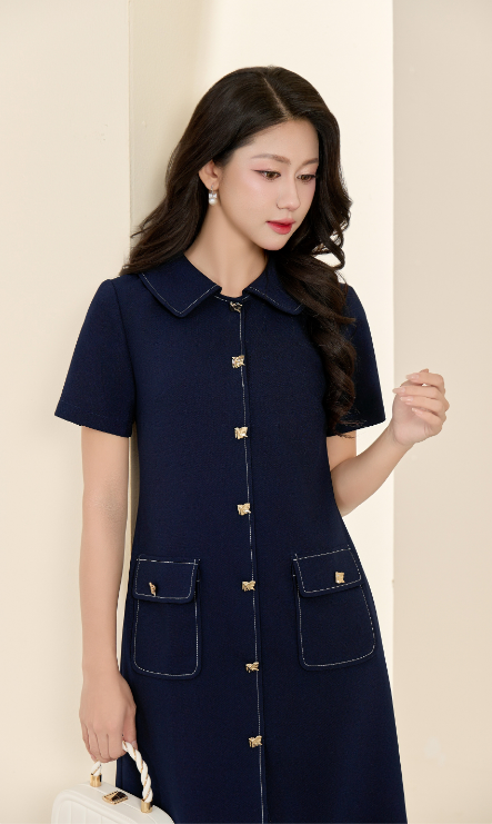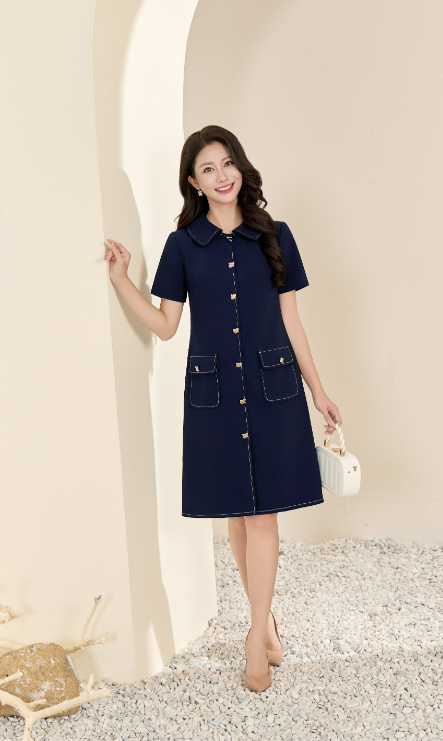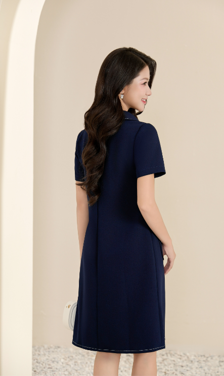 Váy Enan thiết kế dáng suông xanh navy phối viền trắng