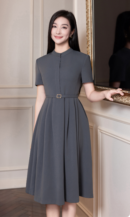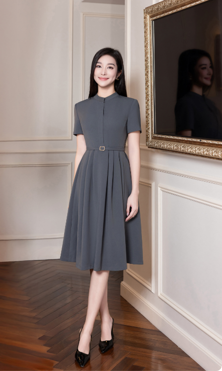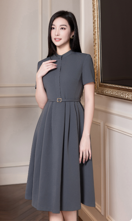 Váy Yura thiết kế phối đai xếp ly tối giản